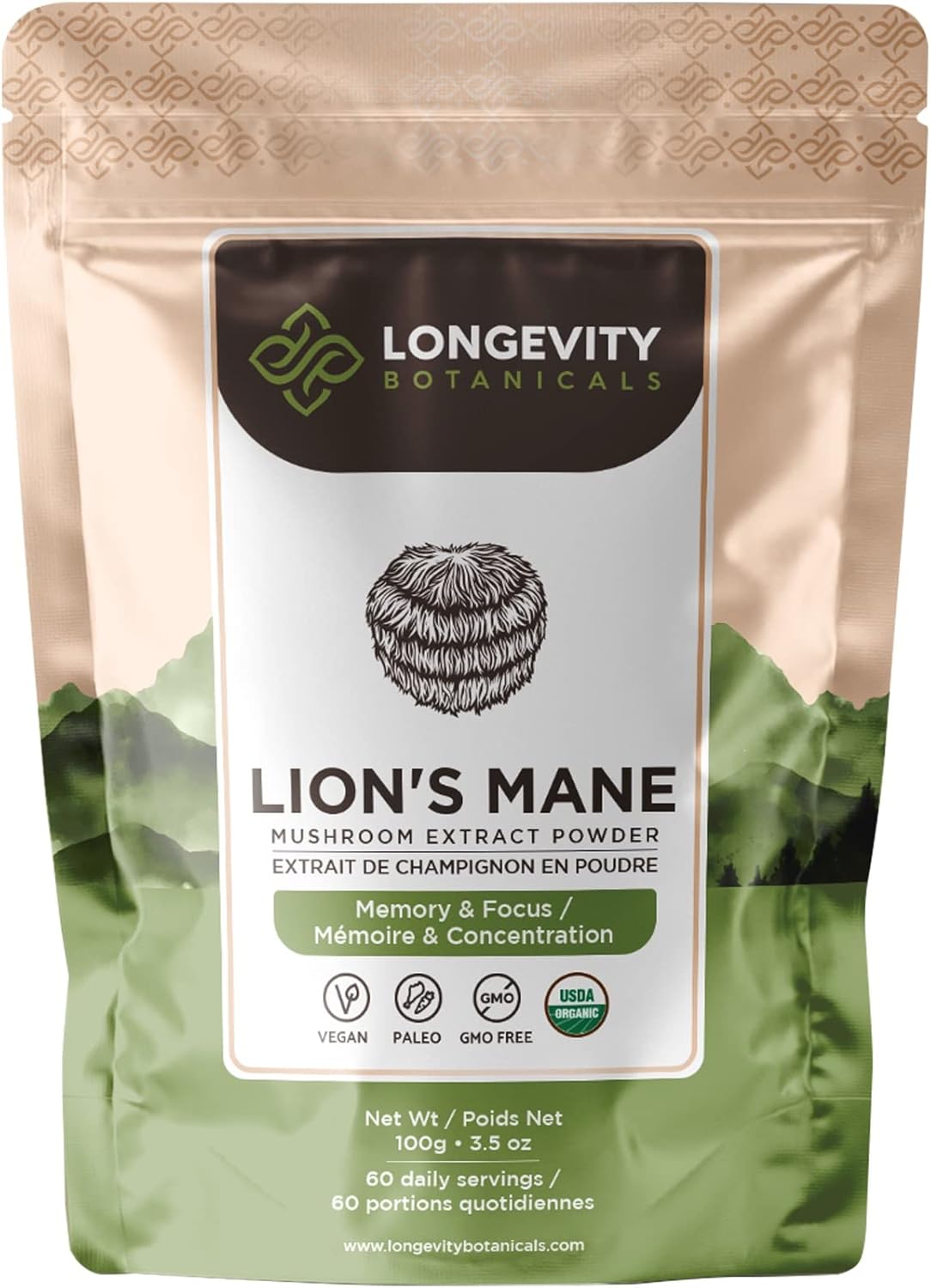 Lion S Mane Ultra Lions Mane Mushroom Supplement Organic Mushroom Extract Powder Comprehensive Immune Support Brain Focus Mental Clarity And Memory 100 G 60 Servings Longevity Botanicals Amazon Ca Health Personal Care